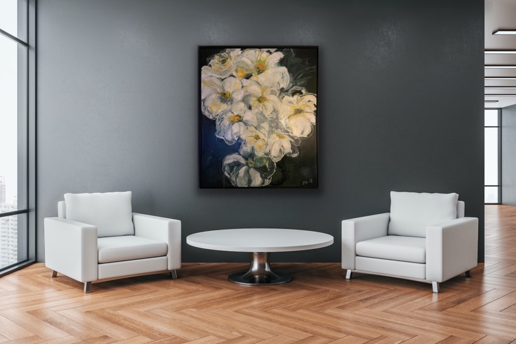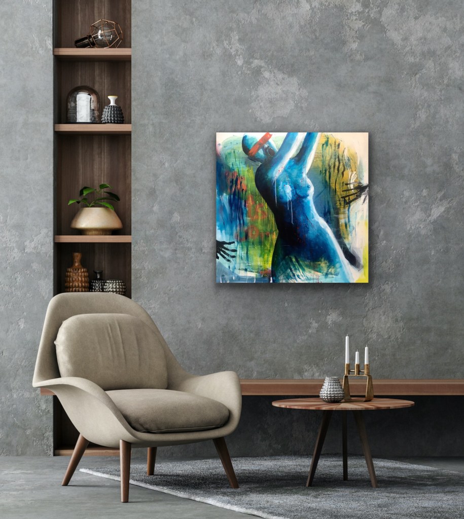 «Fall» 100 cm x 145 cm, Acrylic on deep canvas. Shown standing & horizontal.