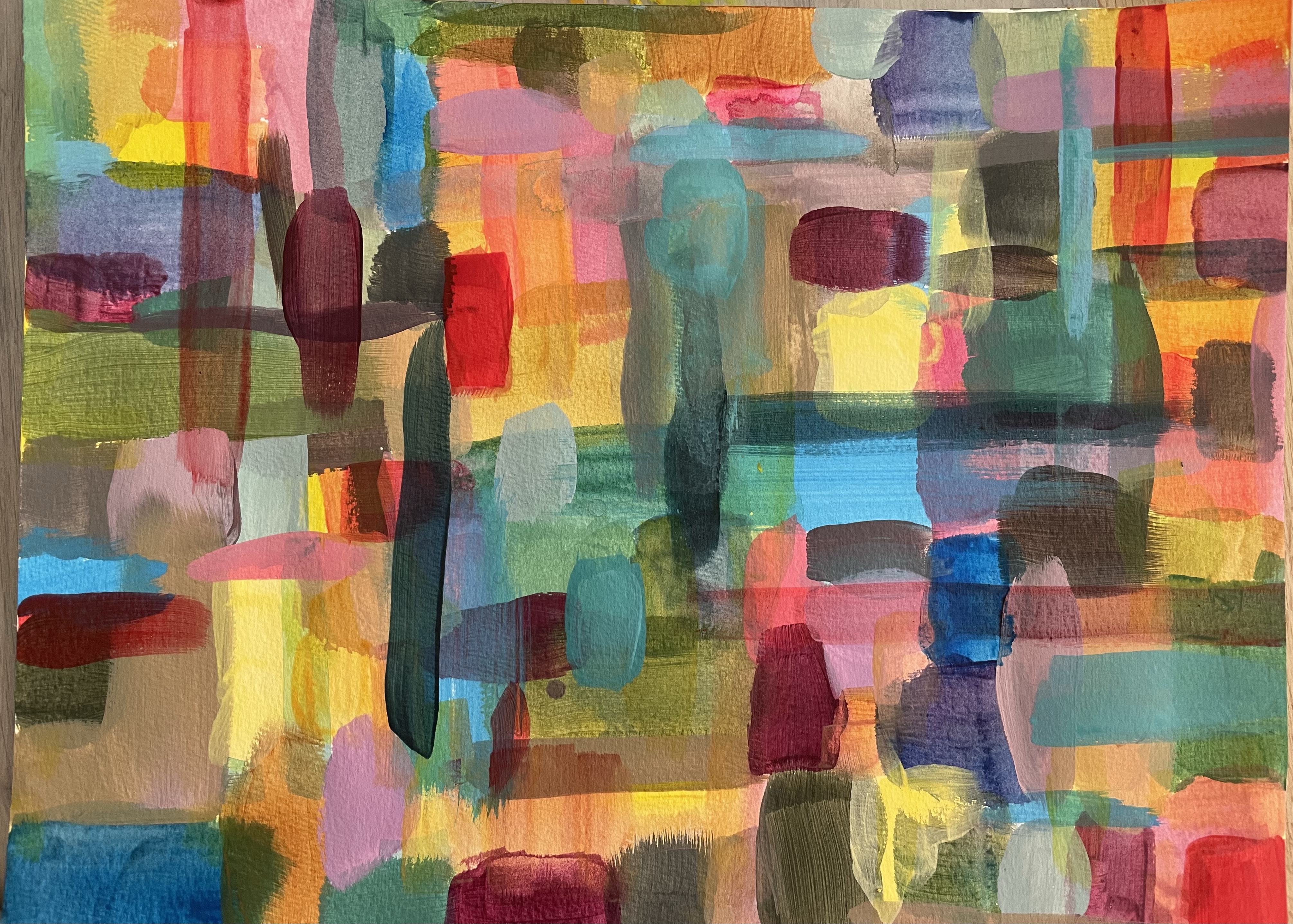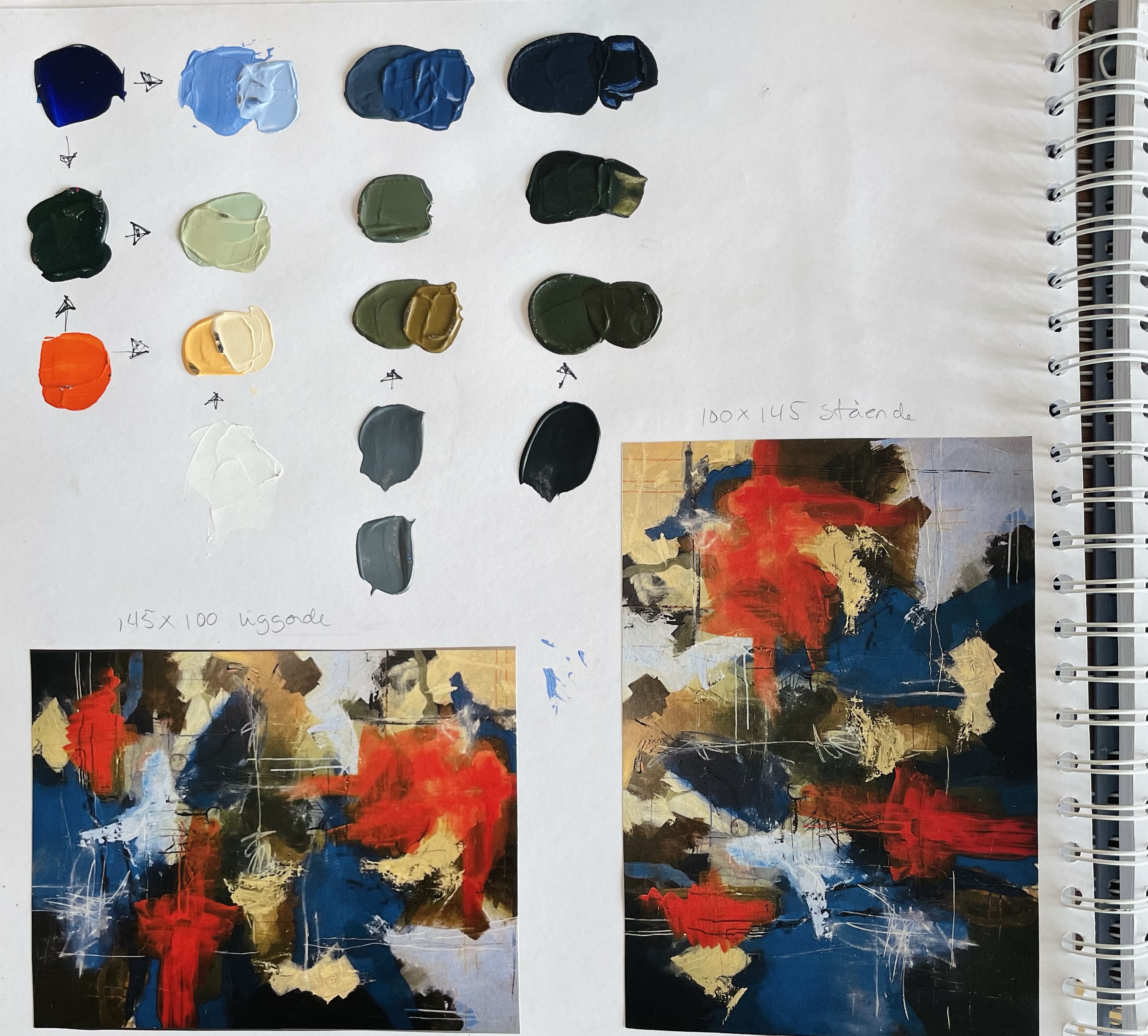 Shown here mixture of colors for abstract works, based on two complementary colors, mixed with black, white and medium gray.